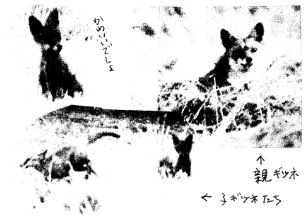 バイトに行ってるY牧場の裏に今年も子ギツネが4匹そだっています。