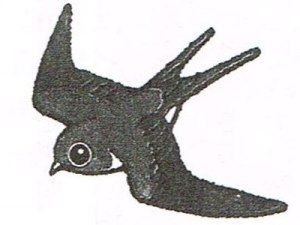 「最近、ツバメが減っている。環境の変化でエサとなる昆虫が減ったこと、家屋のスタイルが変わって巣をかける軒が少なくなったこと、巣の材料になる泥が減った(田畑が減った)ことなどが理由だろう。ツバメの繁殖に必要な環境を守るための寄付を募っている。千円寄付してくれると、このバッジを届ける。」というような話で、そのバッジはコバルトブルーのツバメの形をしていました。