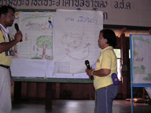タイ国北部ピサノローク県の山麓にあるバンドン地区の村に、昨年(2007年)8月、私はほとんど何の予備知識もないまま立っていた。二日後にここでJICA(国際協力機構)研修生たちが村人とともに「環境・地域資源点検マップ調査」を実施することになっており、準備のために私は一足先に現地入りした。タイの農村を訪れるのは初めてで、数年前に隣国ラオスの村で生活改善のワークショップを行った経験が唯一の頼りだった。