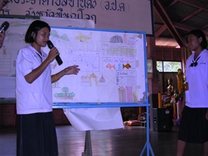 他方、若者たちのグループには、構想図(コンセプション・マップ)と称して、村の地図の上に将来の姿(ビジョン)を描いてもらった。利発そうな女生徒たちが描いた村のビジョンには、高層ビルや飛行機、新幹線も登場していた。それは現代の都市の姿そのもので、もし彼女たちの憧れをそのまま表現しているのなら、彼女たちは早晩この草深い村をあとにするだろうと思った。若者たちが描いたビジョンが暗示するのは、このタイの山村もまた日本の過疎の村と同じような道をたどるということなのか。「経済成長」の結果、日本のように山村から人々の姿が消えてしまうことのないことを祈った。