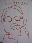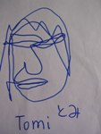 ワークショップでのアクティビティのひとつ。二人一組になり、相手の顔を見て、絶対に手元の紙を見ず、ペンは紙から離さないで一筆書きで描いた似顔絵。