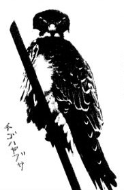 先日、朝、犬の散歩中に、電線に止まっている一羽の鳥に気付きました。キジバトかな? でも、よく見ると頭の大きさ形が明らかにワシタカ系。おっ、ハヤブサか?