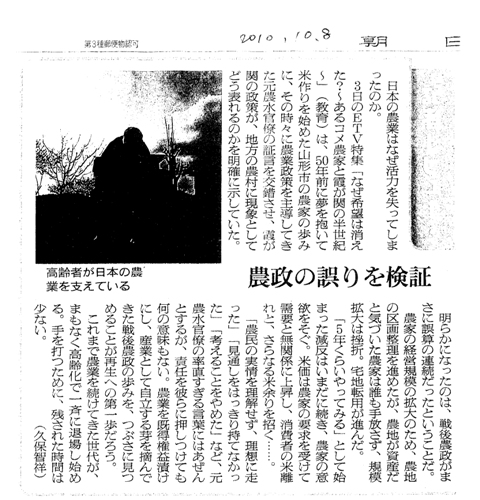 「産業としての自立」? それは、グローバル化に対応できる競争力をつけろということでしょうか? それは、規模拡大・合理化ということでしょうか? それで、産業として自立できるのでしょうか? 農家・農村を踏み台にして肥大化した自動車や家電産業は産業として自立しているといえるのでしょうか?